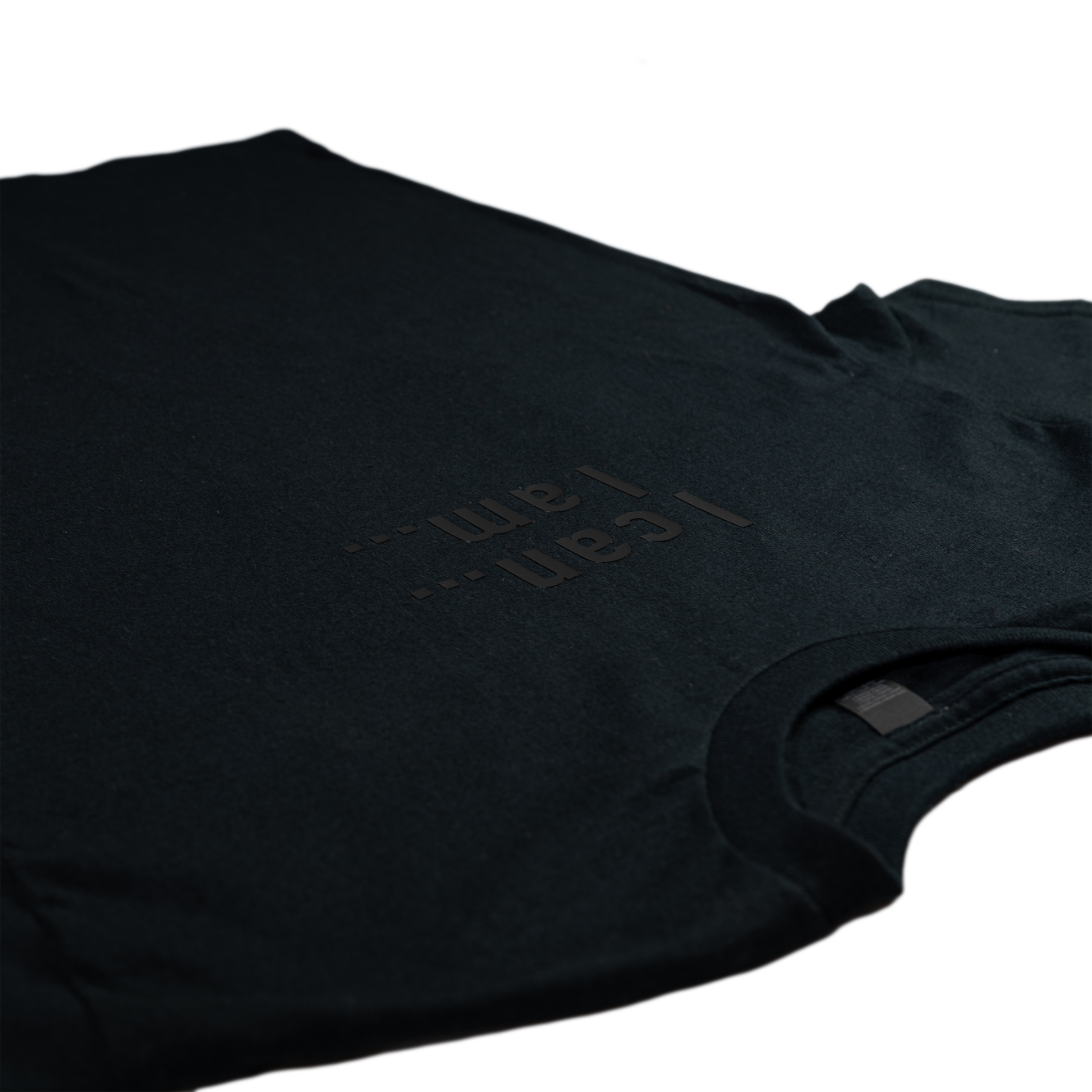 Show how much belief you have in yourself this summer with the popular black on black styled "I am... I can..." t-shirt. Manerke name and butterfly logo also occupy the right and left shoulder sleeves.